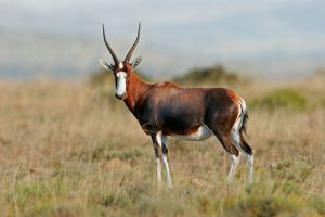 Scientific Name: Damaliscus dorcas Subspecies: Blesbok (Damaliscus d. phillipsi) Distribution: South Africa and Namibia (in game farms) Habitat: Open bush and grassland Description: The two species are here described as one as the difference between them is negligent. (Bontebok is darker in colour, has deeper grooves in its horns, has all white legs and the facial white band is usually...