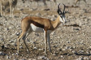 Scientific Name: Antidorcas marsupialis Subspecies: Antidorcas m. hohmeyeri, a. m. angolensis. Distribution: From Angola in the North till the northern parts of South Africa with main distribution in Namibia and Botswana. Habitat: Open dry plains and semi-desert. Small gazelle with relatively long legs. The Springbok reaches ca. 95 in height and has an average weight of 25 - 45 kg. General...