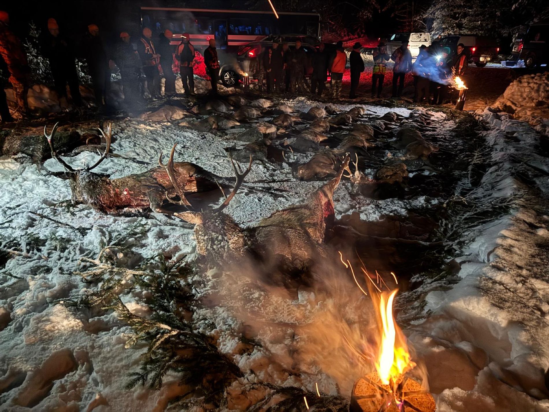 During the trip, wild boar, sika deer, red deer, and foxes were taken. The atmosphere among the participants was excellent, and camaraderie and good company were just as much a part of the experience as the hunt itself.
