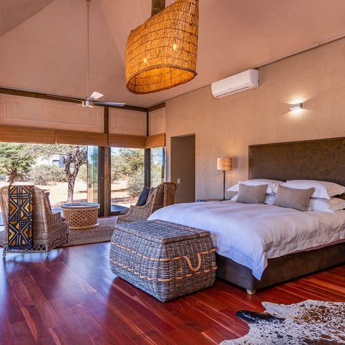 Our property lies at the entry of an enchanting paradise, where the dunes stabilises through vegetation, forms an African savannah, proudly hosting Acacia such as the Camel thorn, black thorn and Sweet thorn, as well as the picturesque Shepherd´s tree and White raisin bush. Combined with breathtaking sunsets, the sandy Kalahari soil, and an abundant birdlife, a unique and unforgettable African experience is in the making.