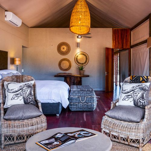 Each one of the tented suites has artistically been sculptured, piece by piece to create a tapestry of depth, warm colours, texture and contemporary style.
