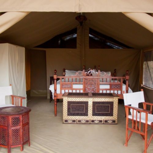 All camps are built in typical East African style. They are all beautifully situated, very comfortable and offer roomy, insect proofed tents (double), with wonderful beds and bed linen, dressing table, clothes racks, shelves and chairs. There is also a private shower and toilet with hot and cold running water in all tents. There is also a cosy “mess tent” for dining and relaxing and of course a well equipped bar, complete with refrigerator to ensure ice cold drinks are always available.