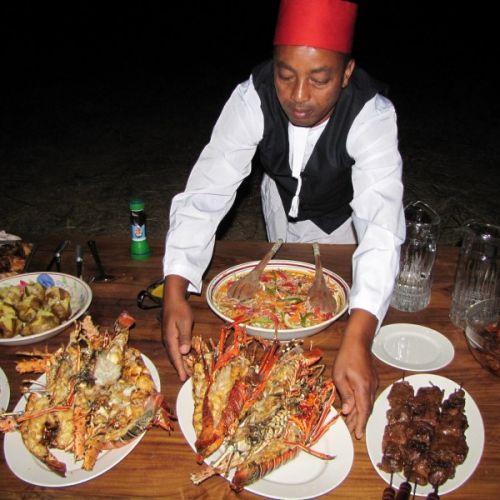 The cuisine is of a very high standard. A good, solid breakfast is served every day featuring fresh fruit, bacon and eggs, freshly baked bread and tea or coffee. Lunch in camp consists of 2 - 3 courses, but on days you are out hunting far from camp a picnic lunch will be provided. Dinner is also a 2 -3 course meal, with a choice of good wines, spirits and other drinks that fully live up to the high quality of the food.
