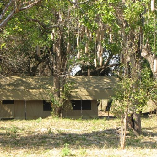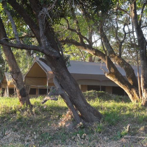 The camp gas been built in typical East-African style and is of a very high standard. It is beautifully situated, very comfortable, and offers spacious insect-proof tents (double tents) equipped with good beds, bed-linen, bedside tables, clothes-racks, shelves and chairs. All tents also have private toilets and showers, with hot and cold running water. Furthermore these is a cozy mess “tent”. A well-stocked bar with a refrigerator to provide ice cold drinks is naturally also part of the camp.