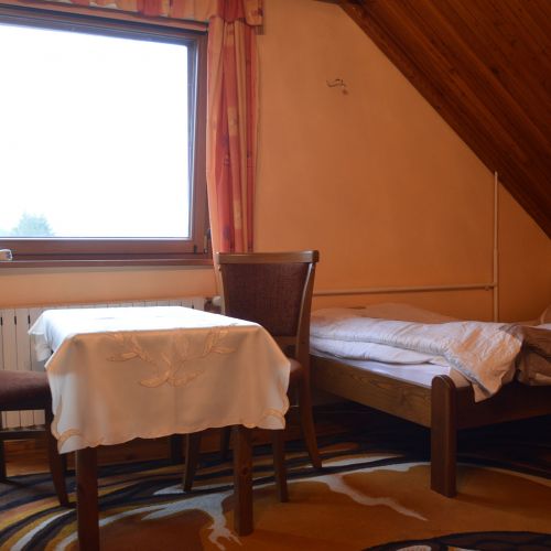 Dąbrowa offers a choice of accommodation. One option is to stay with Janusz Boguski, who offers accommodation for up to 8 people. Although you will not find any great luxury here, you stay in the family’s own home, where the atmosphere is really cosy, and meals are excellent. Janusz Boguski speaks good German. The other option is to stay with the Podlaszewska family in the beautiful surroundings of Bursztynowo. Again you are staying in the family home, with hosts who really take care of their guests. The meals here are again really good. Here there are 2 double rooms. Your hosts here speak English. In both places a refrigerator is at the disposal of guests. WiFi and mobile phone coverage is available both places.
