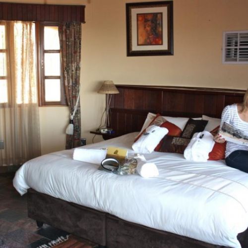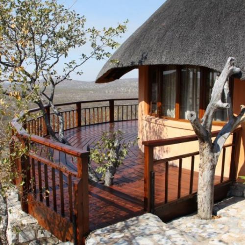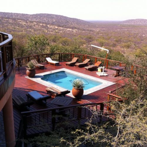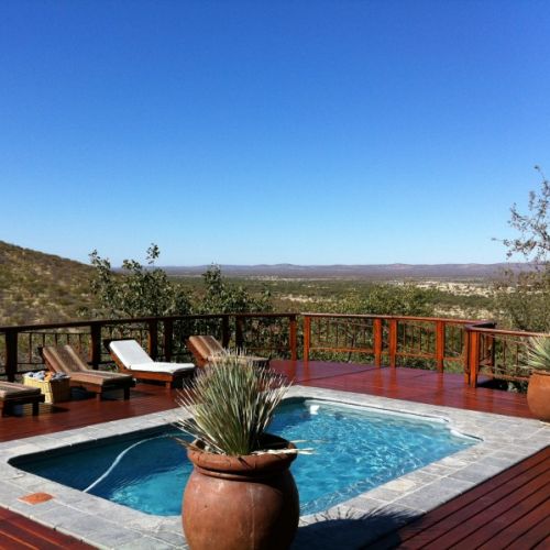 Our hunters will be accommodated at the magnificent Etosha Mountain Lodge. Previously, you could also choose to stay at Etosha Safari Lodge, but it is now only a tourist lodge. Mountain Lodge is built on the top of a small mountain with a magnificent view over the surrounding area. You will be accommodated in comfortable thatched chalets decorated in African style. There are 6 luxurious thatched chalets, and a suite with its own private viewing deck. All the rooms have en-suite bathroom, which are very big and there is a bathtub as well as a shower. There are also a Lapa, dining room, bar, swimming pool and wine cellar. Furthermore, a stay with Etosha Hills Hunting is a culinary experience out of the ordinary. You can really look forward to when it is going to be your turn to visit. This destination is very family-friendly and offers a couple of activities for the family as well.