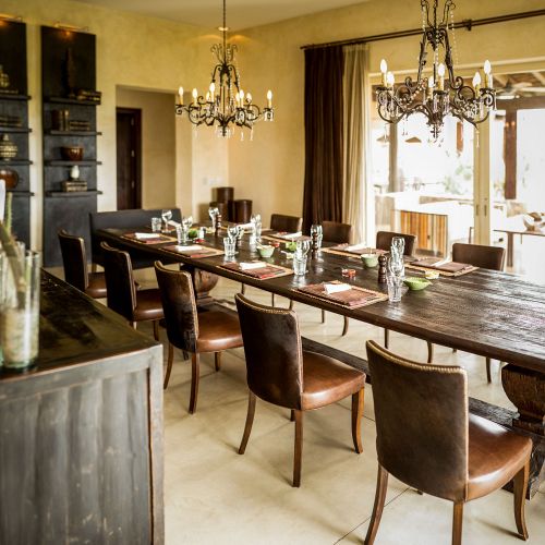 After a long day of dove hunting, hunters return to the lodge where a relaxing evening with good food and drink awaits them. The inviting fireplace in the living room and the well-equipped bar will help hunters get into a relaxed mood before dinner is served. Chef favorites include pepper-stuffed dove breast wrapped in bacon and grilled over charcoal, dove breast "milanesa" (filet, breaded, and fried), fried perdiz legs, and local cheeses and cold cuts.