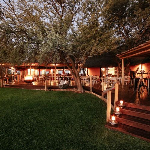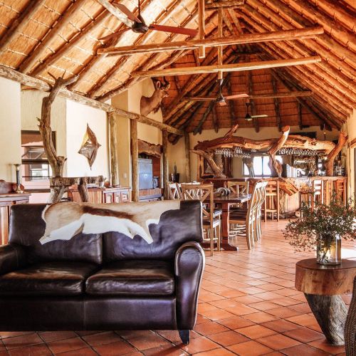 VERONICA Lodge is situated in a typical Kalahari savannah landscape with red dunes and majestic valleys. The main building and the surrounding thatched bungalows are all beautifully situated on a dune, which gives an exceptional 360 degrees view. The bungalows are with air-condition and lots of atmosphere. There are 12 bungalows with room for 24 people.
