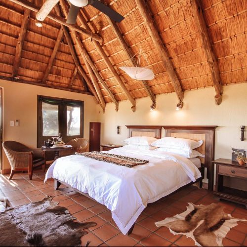 KALAKWA Lodge, which lies about 40 minutes drive from the airport, offers accommodation in spacious and luxurious thatched bungalows with air-condition. The bungalows are furnished with selected interior of high quality. There are 6 bungalows with room for 12 people. In this camp there is also a fitness section, a sauna and a swimming pool.