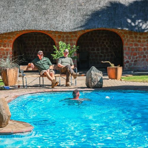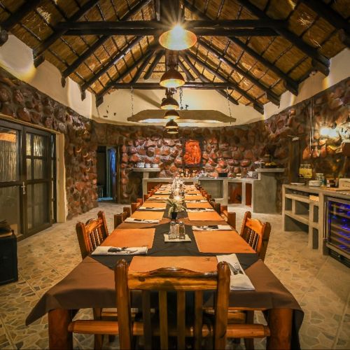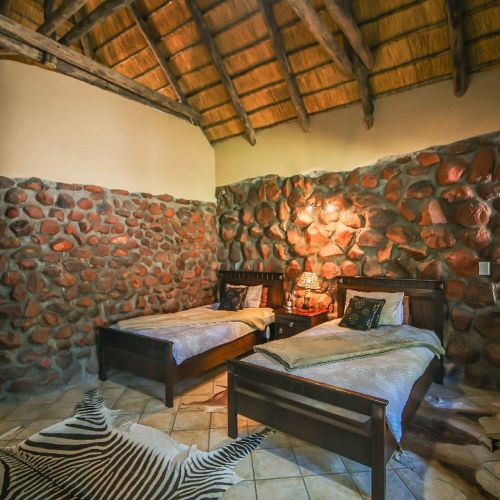 The accommodation in the lodge, which is built in classical African style in stones with thatched roof, is really comfortable and provides the right African atmosphere during your stay. The lodge now consists of 2 executive suites with minibar, 2 double rooms, 1 family room and 2 twin rooms. Each room is decorated individually and equipped with electronic safe, water dispenser and en-suite bathroom.
