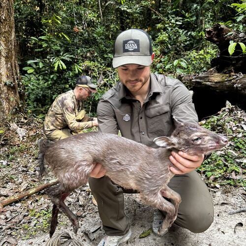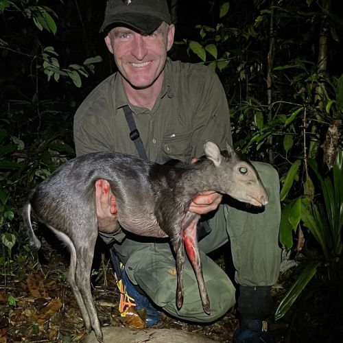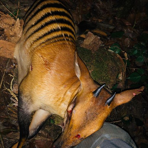 Experience an exhilarating hunt in Liberia's dense rainforest, targeting special species like the zebra duiker and yellow-backed duiker.