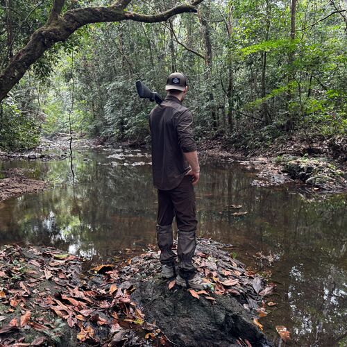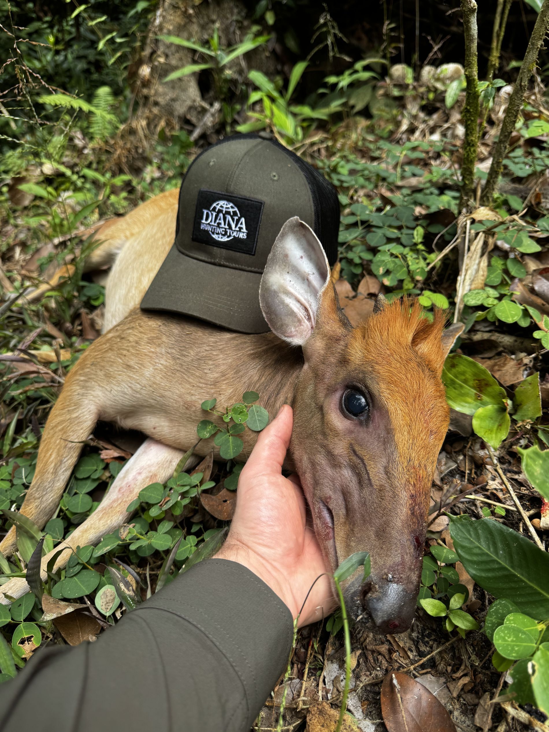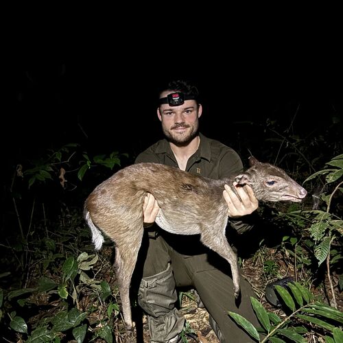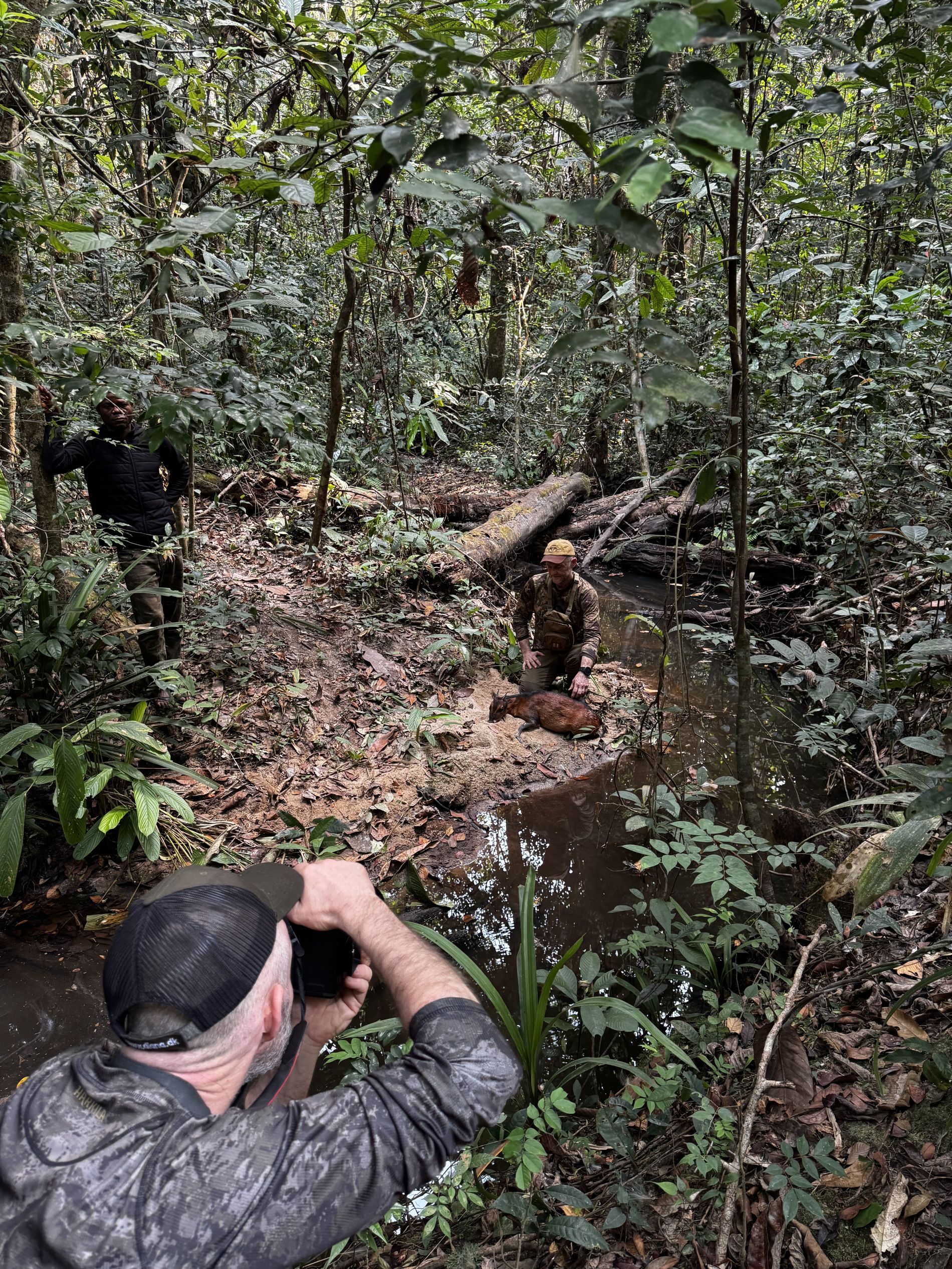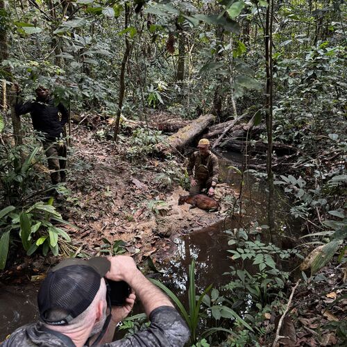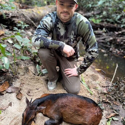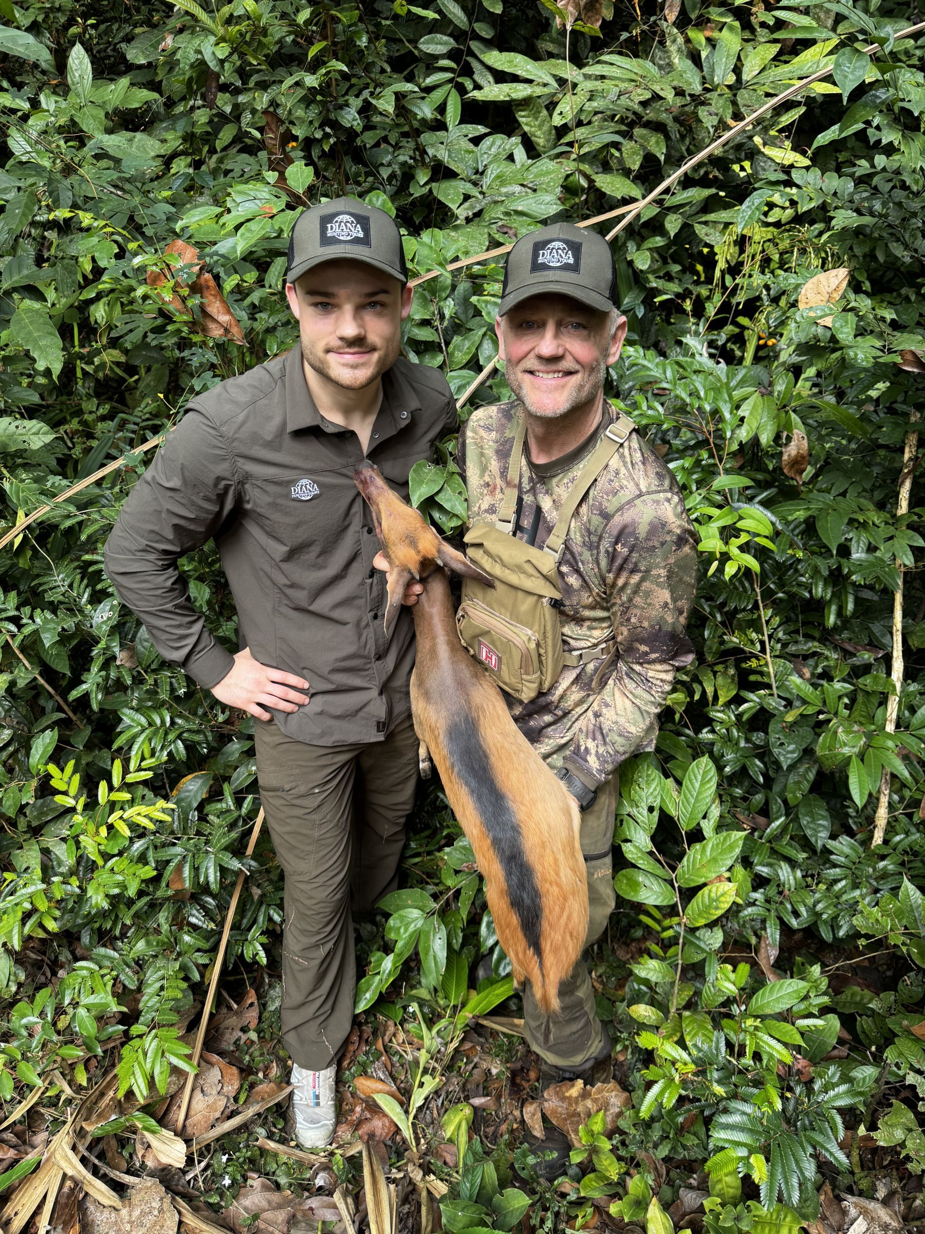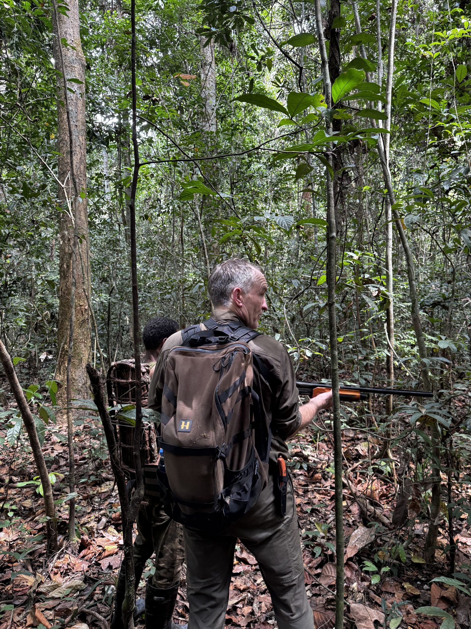 Hunting is always on foot, combining "walk and stalk" and calling hunts, where local guides attempt to lure duikers into shooting range. Hunting is conducted with shotguns provided by our partner, as bringing personal firearms is not permitted.