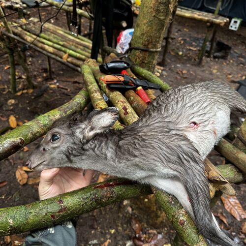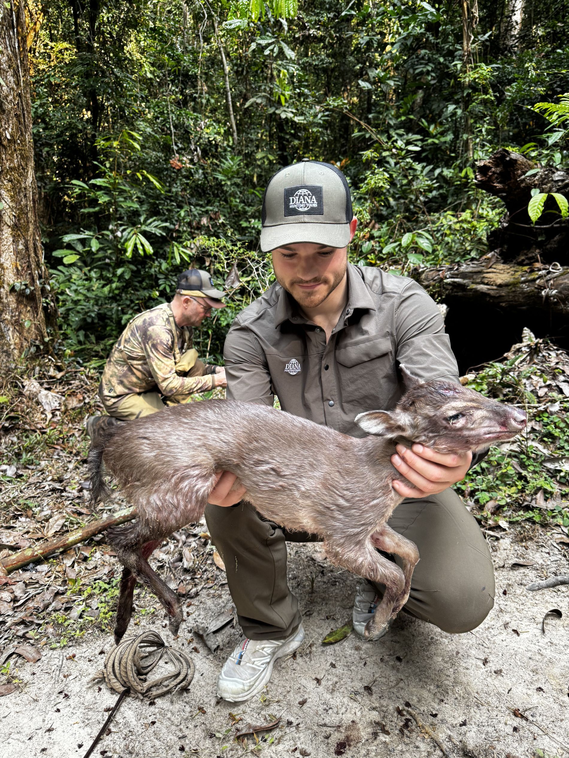 After a good night's sleep and breakfast, the journey continues to the base camp in the rainforest, taking approximately 6 hours depending on traffic conditions. Upon arrival, you'll repack your luggage and don your hunting gear. From there, a 2-hour hike awaits to the actual hunting camp (tent). Once the base camp is left, the hunt begins.
