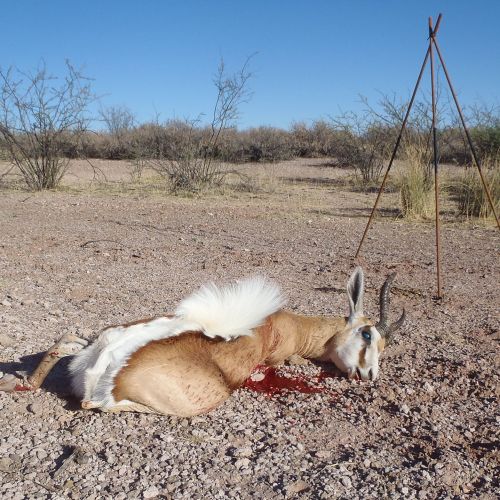 Scientific Name: Antidorcas marsupialis Subspecies: Antidorcas m. hohmeyeri, a. m. angolensis. Distribution: From Angola in the North till the northern parts of South Africa with main distribution in Namibia and Botswana. Habitat: Open dry plains and semi-desert. Small gazelle with relatively long legs. The Springbok reaches ca. 95 in height and has an average weight of 25 - 45 kg. General...