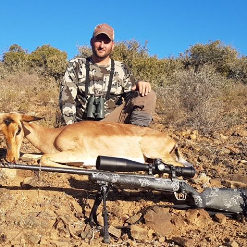 Once again I was hunting with my Mauser M03 African PH in .300 Winchester Magnum with a Zeiss Victory HT 2.5-10X on top. Certainly too much gun for an animal weighing only about 12 kg but for the nyala the caliber was suitable and therefore I felt it was a very good all-round rig for this hunt. I simply had to be careful to place the bullet behind the shoulder on the red duiker to give the taxidermist a fair chance.