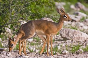 Scientific Name: Madoqua Kirki Subspecies: Damara Dik-Dik (Madoqua damarensis) Distribution: Kirk's Long Snouted Dik-Dik: Tanzania and Kenya Damara Dik-Dik: Namibia and Angola. Habitat: Bush and thickets, often in the vicinity of rocks or mountains. Description: Small antelope weighing up to 6 kg with a shoulder height normally not exceeding 45 cm. The Dik-Dik's nose is moderaterly elongated,...