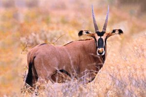 Scientific Name: Oryx g callotis Subspecies: Fringe-eared Oryx is a subspecies of commmon Oryx (Oryx gazella) Distribution: The Northern part of Tanzania and the Southern part of Kenya. Habitat: Dry open bush and short grass savanna Description: Large antilope (180-200kg) with a compact body. The colour is grey-fawn with a well defined pattern on head and body so typical of the Oryx...