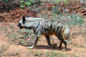 Scientific Name: Hyaena hyaena Subspecies: None. Distribution: India: Sind, Kutch to the Nilgiri Mountains. Habitat: Dry, rocky regions covered in shrub. Description: Long-legged Hyena weighing up to 55 kg and measuring up to 80 cm over the shoulder. It reaches a total body length of 1.20 m without tail (35 cm). Striped down the sides, longish mane on the neck. Attractive animal with the...