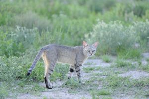 Scientific Name: Felix silvestris cafra Sub - species: One of the five sub-species of wild cat Distribution: Sub-saharan Africa, excluding the deserts of the Namibian coast and areas of rainforest Habitat: Found in a wide range of habits, as long as they can provide cover. Description: Similar in appearance to a domestic cat but with longer legs. Two colour phases iron gray and...