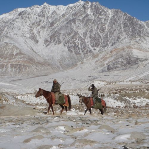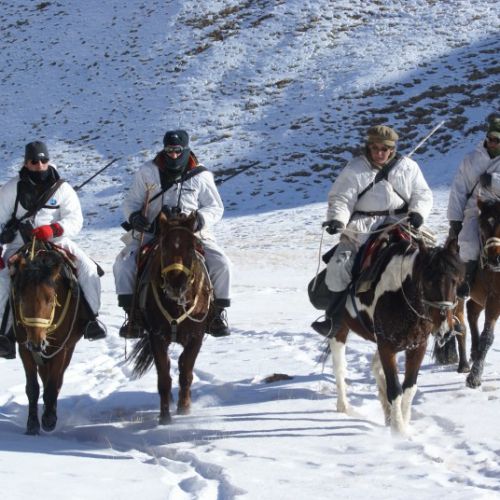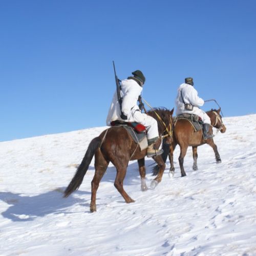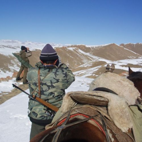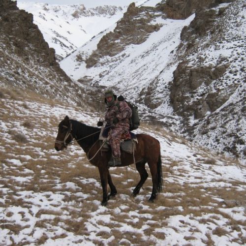 As a hunting guest to Kyrgystan it is important to be in a good physical condition, and therefore spend time and energy on physical training before the trip. You will be hunting at high altitudes, must expect long days with strenuous stalking in difficult terrain and often at low temperatures, so the more fit you are the better are the chances of success. Irrespective of hunting area and specie the hunt only takes place on horseback and on foot. As for clothing you must bring warm, water- and wind proof clothes, and it is also a good idea to have several layers so that you can regulate your clothing depending on the various hardships. You must also be prepared for long shots, 200 – 350 meters is not unusual, so therefore we also recommend that you before the hunt spend time training with your rifle, and recommend rifles with a flat trajectory, such as 300 Win Mag. When booking the hunt we will of course send you a detailed equipment list.