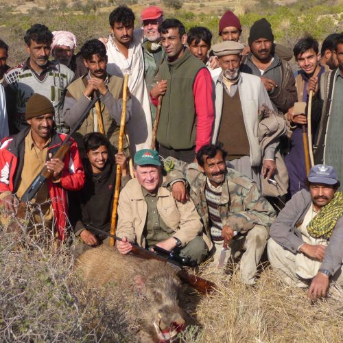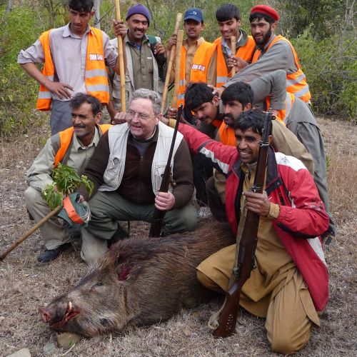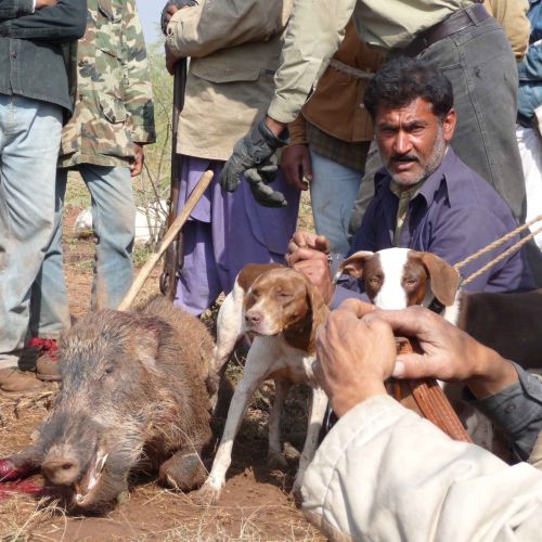Wild boar huts can be arranged for as few as one to three hunters and carried out as stalking and lying in wait. If you can put together a group of 6 or more hunters, that can form the basis for a five-day driven hunt, which – depending on your shooting skills and hunter’s luck – can result in a parade of 80 boars or more. The record for Zoon Safari is 115 wild boar on a five day driven hunt. There is –because of the low hunting pressure here – generally a greater proportion of keilers in the final result than on a typical european hunt. Boar hunts include unlimited shooting of all wild boars – including keilers. Trophy quality is of a comparable quality to east European (Polish / Hungarian) wild boar. A driven hunting tour to Pakistan can therefore easily be a relatively inexpensive affair, especially if the Hunting Gods are kind to your group.