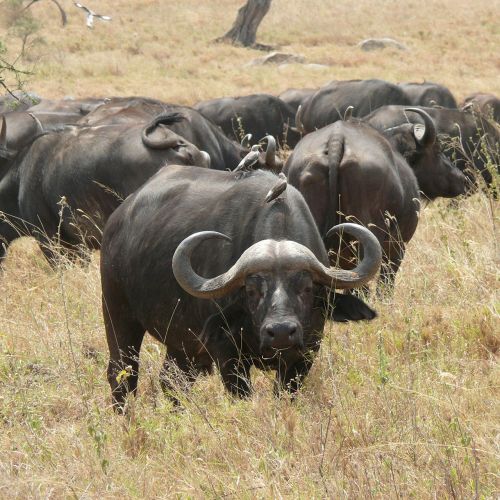 Habitat: Depending on the species the buffalo is found in either dense rainforest, swamps, dense bush or on open savannah.