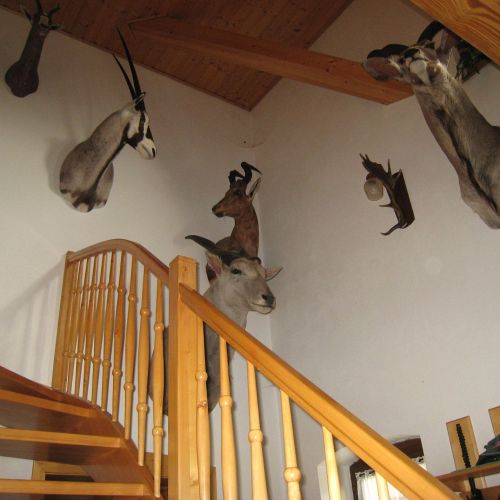 The hunters live in a charming and cozy hunting lodge in the area, with many trophies on the walls and a real hunting atmosphere. There is, of course, a fridge and other necessities for the hunters during their stay, who also have full board. The lodge is located in quiet surroundings out on the area. With a little extra driving, both 3- and 4-star hotels can also be arranged nearby.