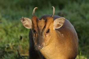 Videnskabeligt navn: Muntiacus reevesi Underarter: ingen Udbredelse: Sydkina (Indført til Sydengland omkring århundredeskiftet). Levested: Tæt underskov Beskrivelse: Ægte muntjak, lille hjort der vejer op til 12 Kg med en skulderhøjde på max. 46 cm og en kropslængde uden hale på 85 cm. Sommerdragten er rødbrun og gråbrun om...