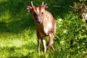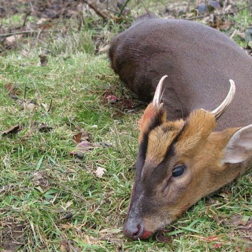 Scientific Name: Muntiacus reevesi Subspecies: None. Distribution: Southern China. (Introduced into southern England at the turn of the century). Habitat: Dense undergrowth. Description: Small deer weighing up to 12 kg and measuring up to 46 cm over the shoulder. It reaches a total body length of 85 cm without tail. General colour reddish brown in summer and greyish brown in winter. The face...