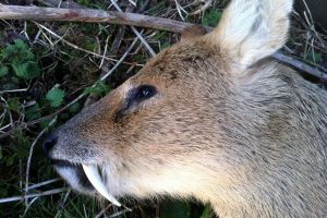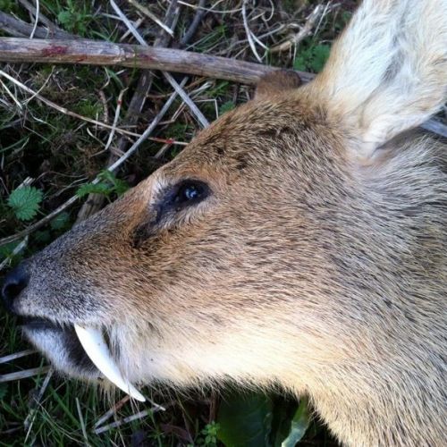 The Chinese water deer is smaller than our native roe deer. Big black eyes, a thick soft coat and the male’s lack of antlers give’s this small buck a very feminine - nearly a cute cartoon-like - appearance. At least from a distance.... This teddy bear like animal possesses a pair of long fangs that makes its trophy seem to have come from a totally different - and much darker - world. A water deer is a must in every trophy collection - we have a great new district, which is also home to plenty of muntjacs!