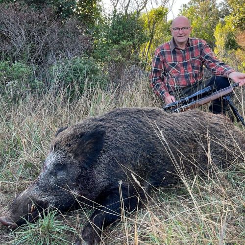 The hunting area extends over 6,000 hectares and is very varied from wooded hills to lush valleys and makes hunting incredibly exciting. The driven hunt in the morning is only for wild boar, as the hunting law in Croatia does not allow the hunting of other game with dogs. The individual hunt will mostly take place from the high-seats in the evening and at night, and it is possible to rent thermal night equipment, which increases the chances of getting some boars. Croatia is home to a healthy population of wild boar.