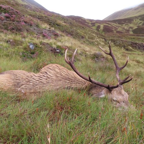 When the deer are located the herd will consist of between 10 and 100 red deer, at this point your stalker will select a stag that, in his opinion, is suitable to be culled. At this point you and your stalker begin your final approach, this will usually involve crawling on the ground in order to avoid detection by the stag.