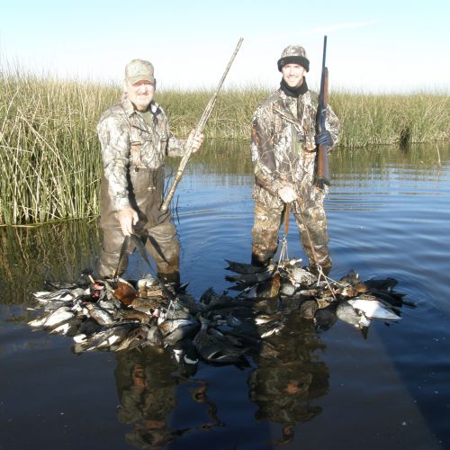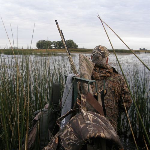Hunters are placed in dry blinds, or large dry, sunken buckets of the style of an individual pit blind, or on platform-pallet blinds, sometimes you will have to hunt with water proof waders.