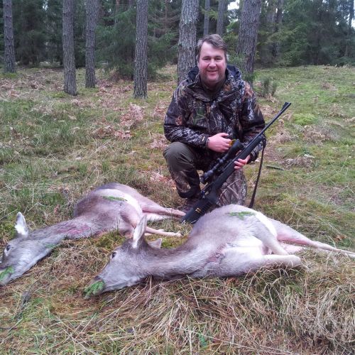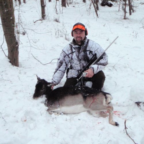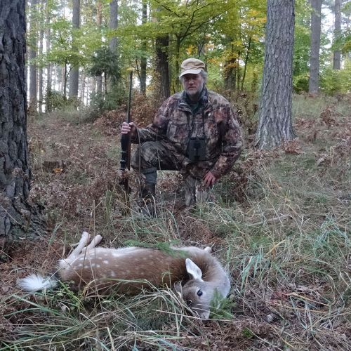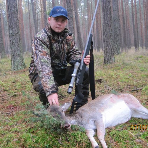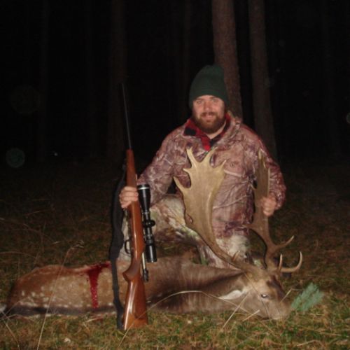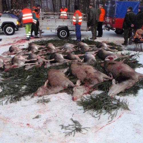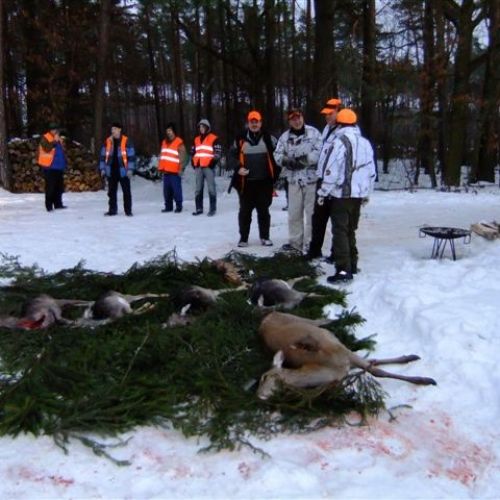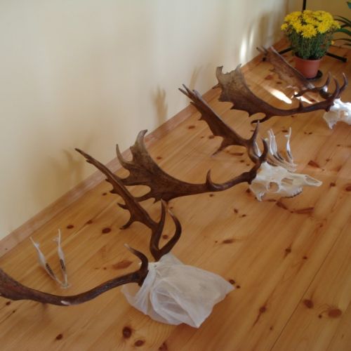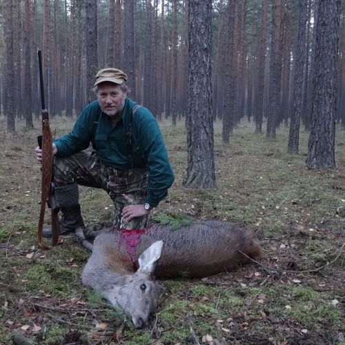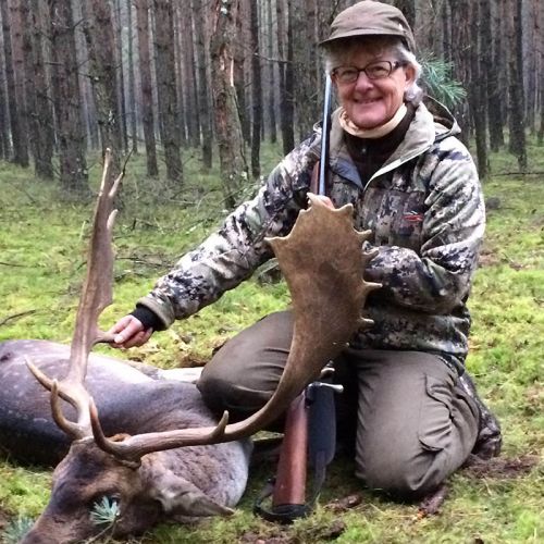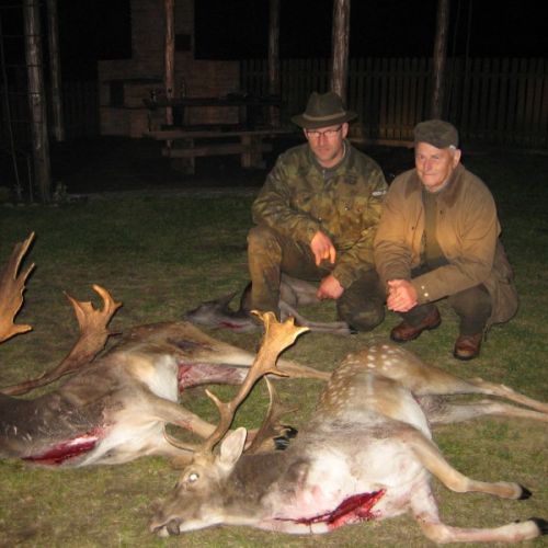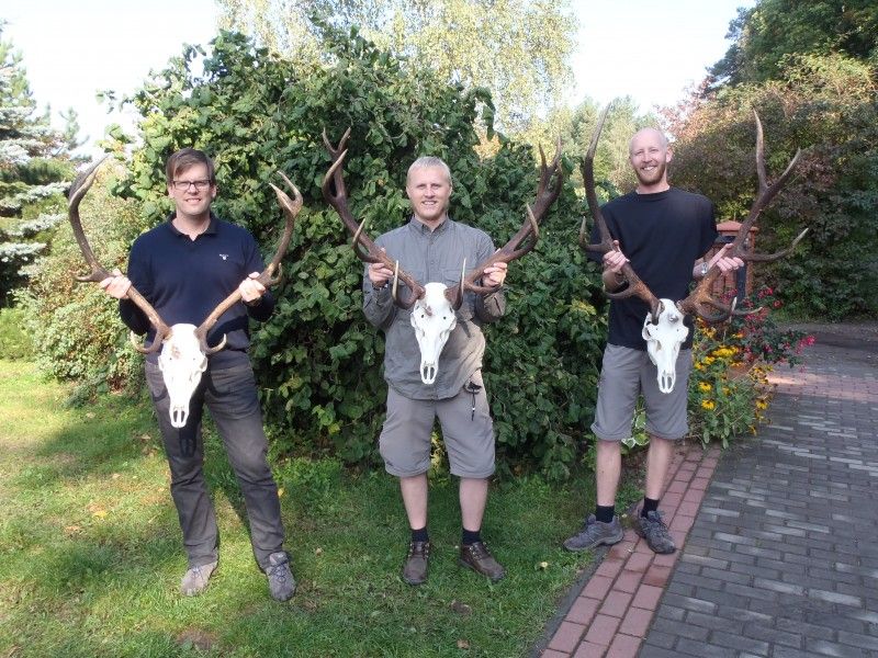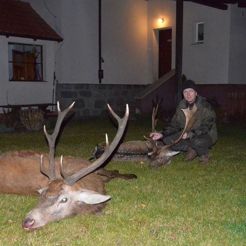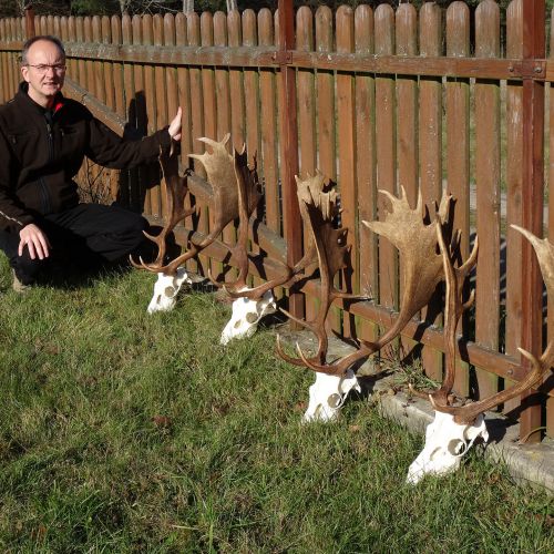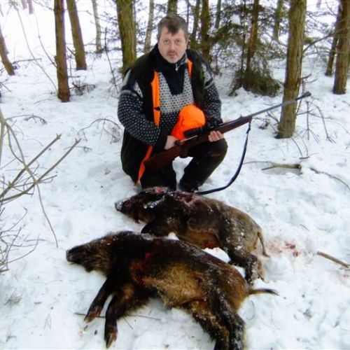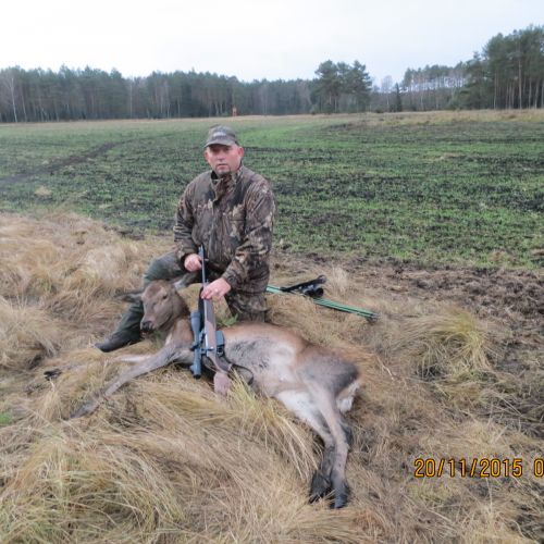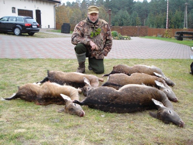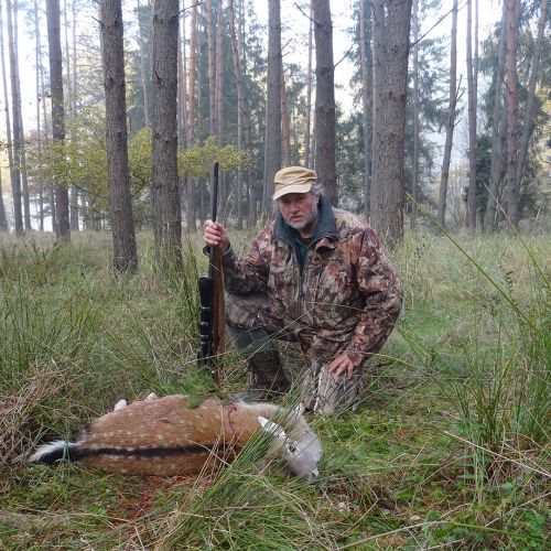 This district is home to Poland’s largest population of fallow deer, with an annual quota of around 270 individuals. Dąbrowa also has good populations of red deer, wild boar, but numbers of roe deer are limited. Around 8 roebucks are shot here annually, most of which produce trophies of under 250g net weight, but a few individuals of over 300g are also taken from here. The annual quota for red stags is 25 - by far the most of which have a trophy weight of 4 - 6 kg, although every year a few trophies of over 6 kg are shot here. Around 50 fallow buck are taken here annually, good, average sized Polish buck - with a few bucks approaching - or slightly above - 3kg trophy weight. There is a reasonable population of wild boar at Dąbrowa, which can be hunted on individual hunts throughout the season or during hind-stalking/small driven hunts in the autumn and winter.