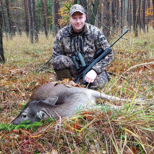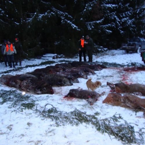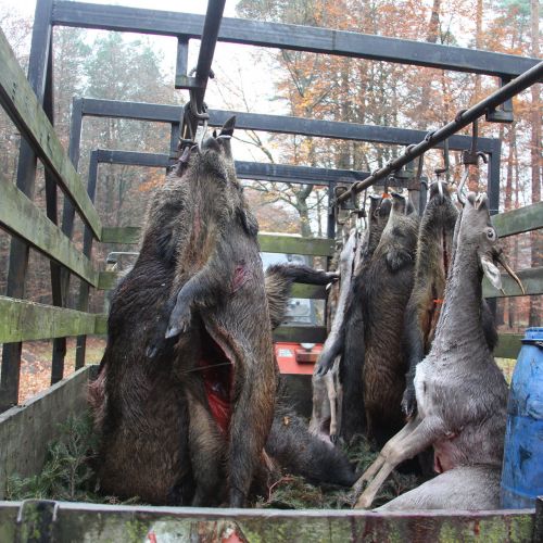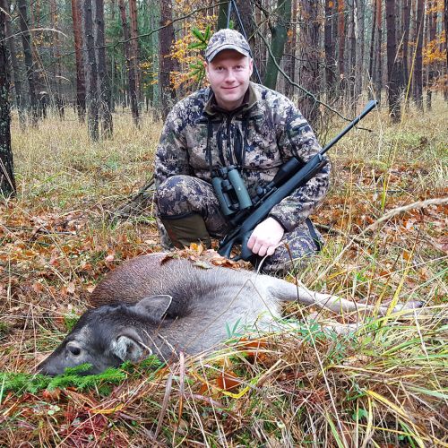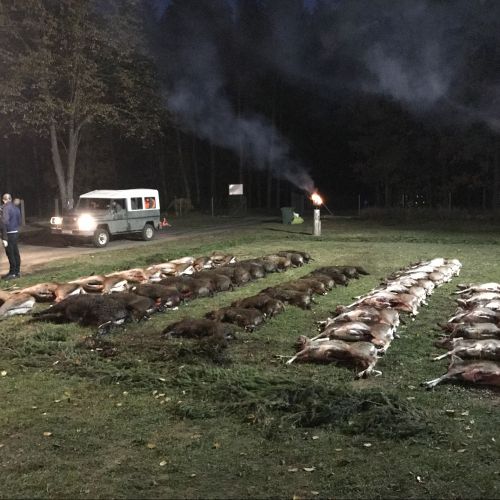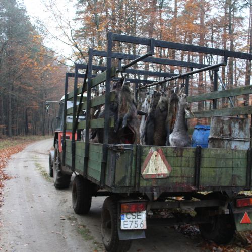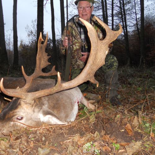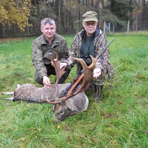 The district offers hunting for roe deer, red deer, fallow deer and wild boar. Annually 38 roe buck are taken here. The trophy size for most of these bucks is under 300g, but bucks of over 300g are also shot regularly, as well as a few over 400g. There is an annual quota of 40 red stags - the majority of which have a trophy weight of between 5 to 6 kg, but Lutowko also produces a number stags of over 7kg - and even a few over 8kg. The population of fallow deer is expanding rapidly, and annually 25 fallow buck are taken here, usually producing handsome trophies of up to 3 kg, a few slightly larger. Lutowko has a dense population of wild boar, and you can hunt these on individual hunts throughout the season as well as on the 4 annual driven hunts, which usually give very good results.