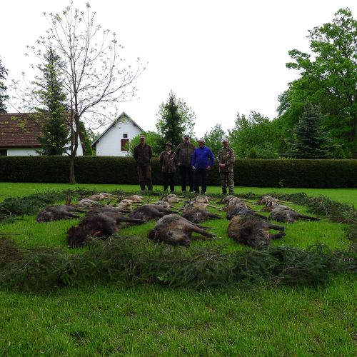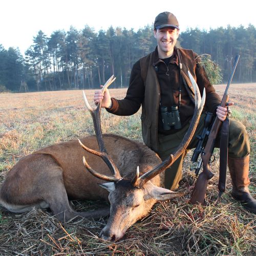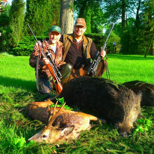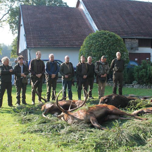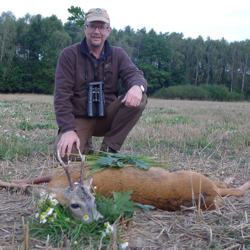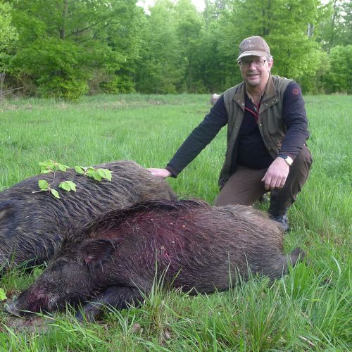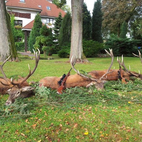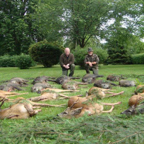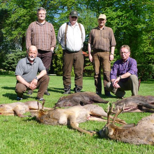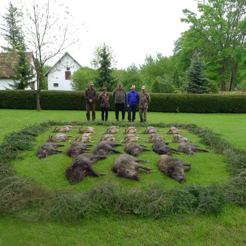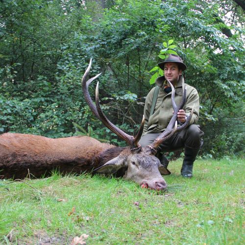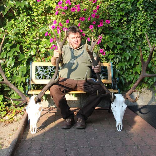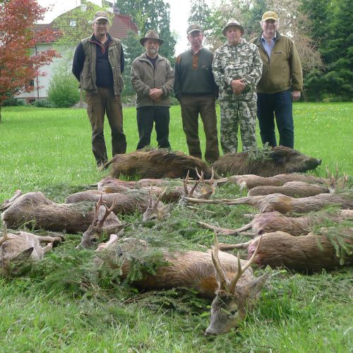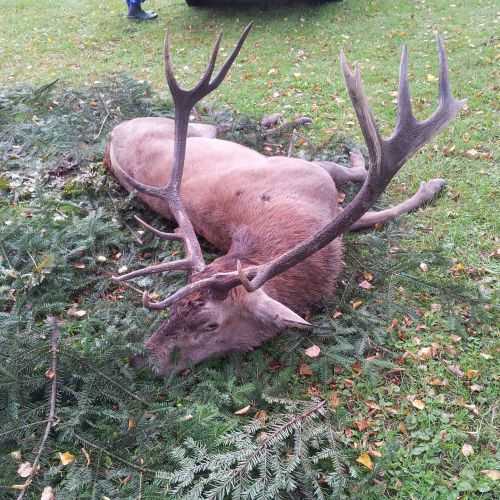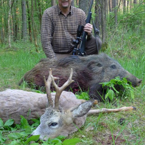 The districts offer roe deer, red deer, wild boar and a few fallow deer. Every year around 92 roebuck are shot annually on the two districts. The trophy size is usually under 350g net, but bucks of over 350g are taken here - a few even over 400g. There is an annual quota of around 21 red stags - the vast majority with a trophy weight of 5-6 kg, but stags of over 7kg do occur here. In 2016 2 really good stags of over 8 kg were shot here. Wild boar can be hunted both on individual hunts throughout the season and on driven hunts in the autumn and winter.