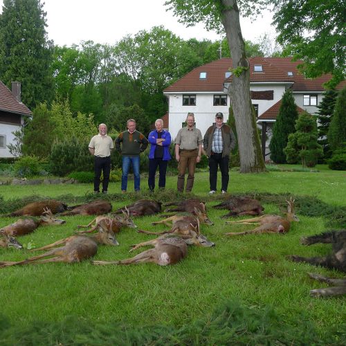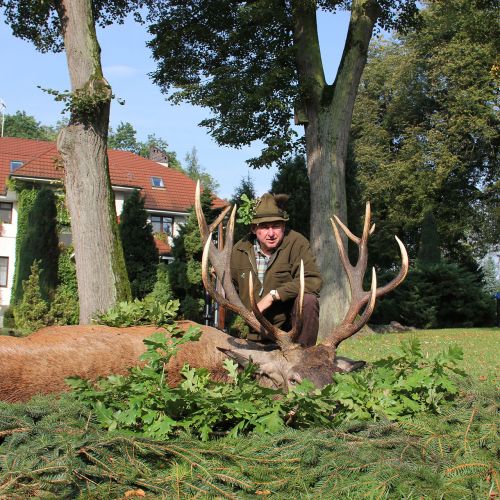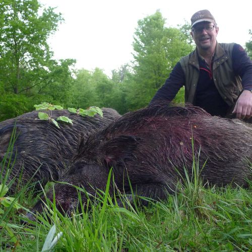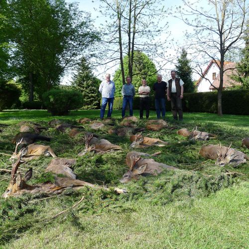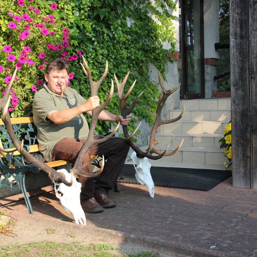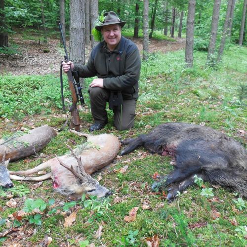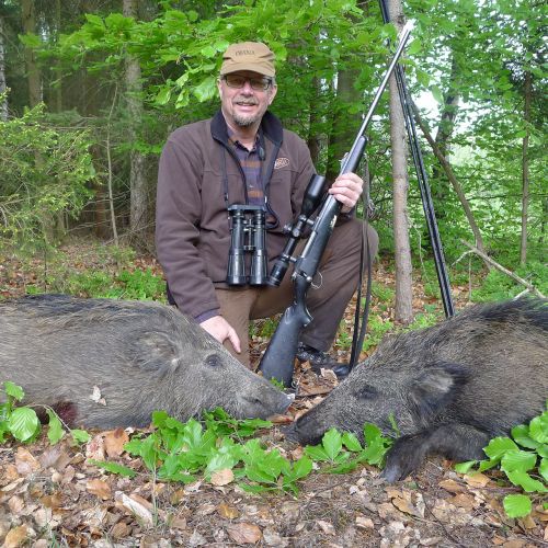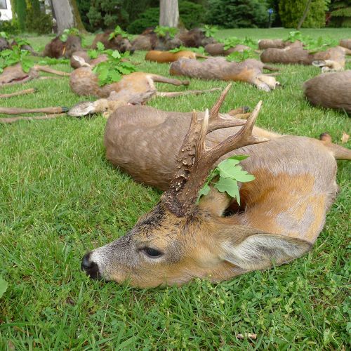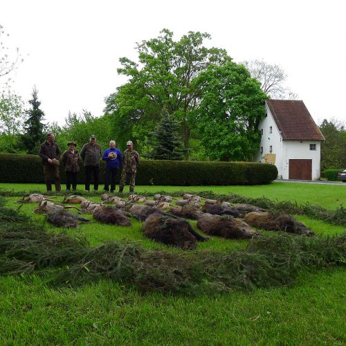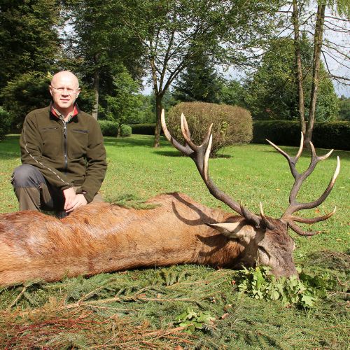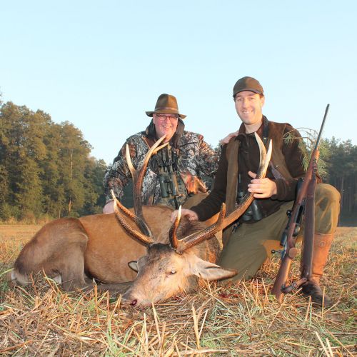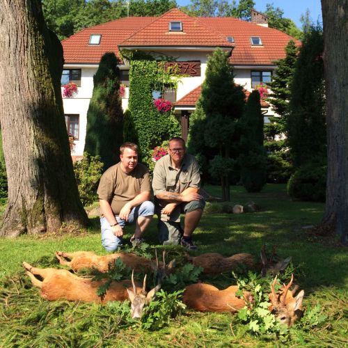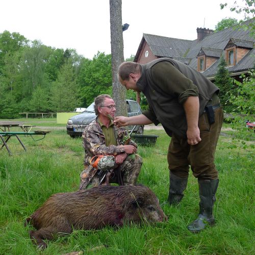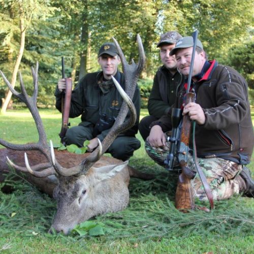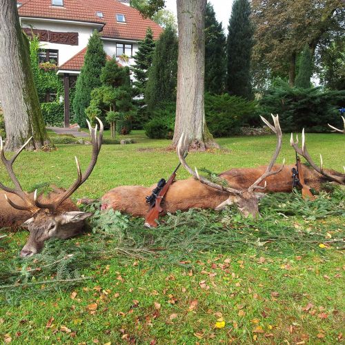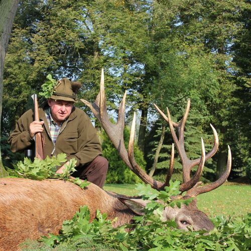 The districts offer roe deer, red deer, wild boar and a few fallow deer. Every year around 92 roebuck are shot annually on the two districts. The trophy size is usually under 350g net, but bucks of over 350g are taken here - a few even over 400g. There is an annual quota of around 21 red stags - the vast majority with a trophy weight of 5-6 kg, but stags of over 7kg do occur here. In 2016 2 really good stags of over 8 kg were shot here. Wild boar can be hunted both on individual hunts throughout the season and on driven hunts in the autumn and winter.