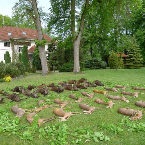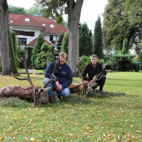 A unique feature of these districts (especially Milicz 45) are the artificial lakes, which are emptied in rotation during October, in order to harvest the carp raised here. After one of the lakes have been drained, it is possible to walk out to the small overgrown islands and see how the lake bed is totally covered by the tracks of red deer and wild boar. During August and September good duck shooting can be arranged - from 1st Sept. in combination with geese.