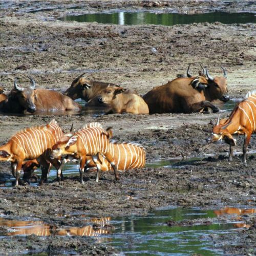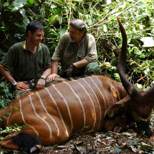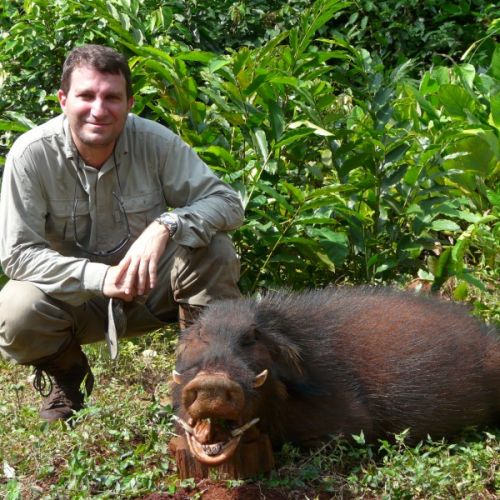 In the rain forest our partner has 4 concessions covering an area of 600.000 ha. The concessions, Boumba, Lognia, Dja and Ndama are situated between 3 national parks, Boumba Bek, Lokomo and Dja, fairly close to the borders with the Central African Republic and the Congo. Even though it is, in principle, possible to drive here from the capital city Douala along gravel roads (2 days), the only practical way of reaching the hunting area is by chartering an aircraft. Our partner has a charter to the rain forest twice a month and it will therefore be possible to share the charter with other hunters and thereby save quite some costs.