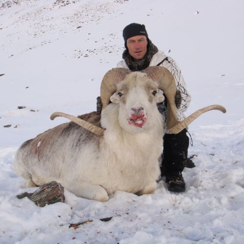 Hunting takes place from the mountain ridges, from where you will spend a lot of time scanning the mountainsides and high altitude meadows. Each hunter is guided by 2 - 3 people, the guides are also responsible for setting up camp, preparing meals, scanning the terrain, skinning trophies etc. Once a good ram has been spotted, the stalking starts. You hunt at altitudes of up to circa 5.000m above sea level, so it is important to be in good shape. You should expect to take you shot from long range, up to 400-500 m is not unusual on a Marco Polo hunt, so it is important that your marksmanship skills have been well trained.