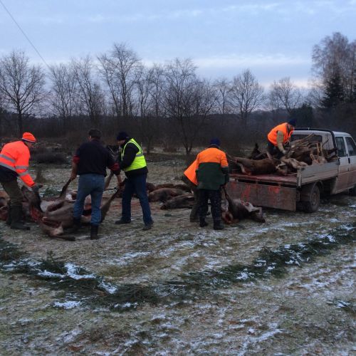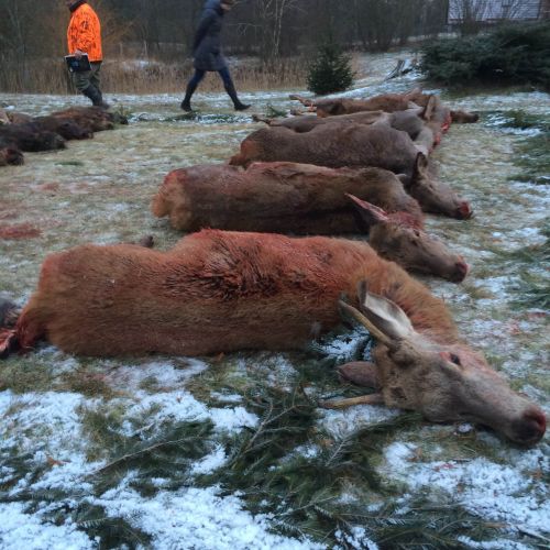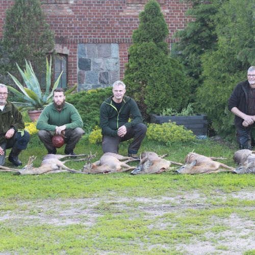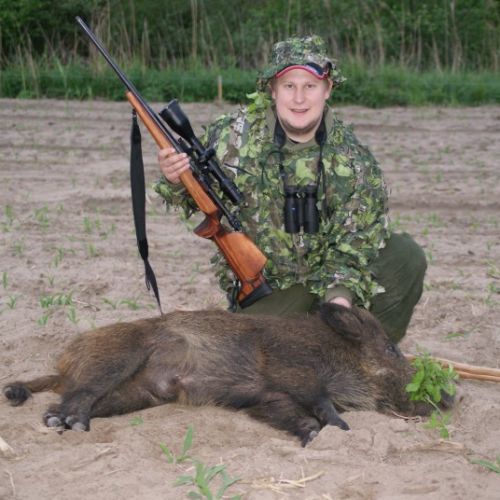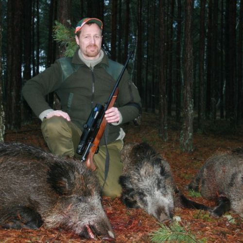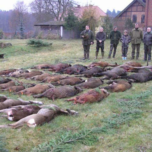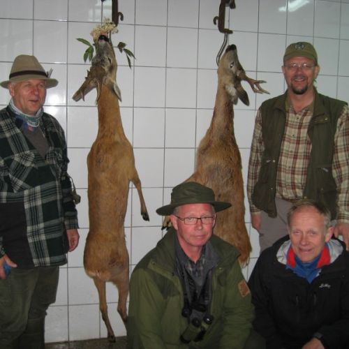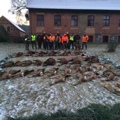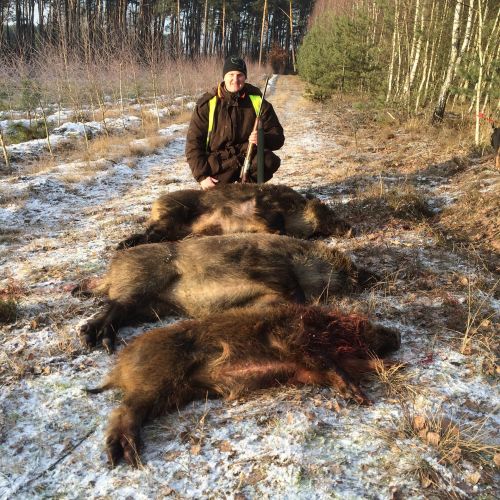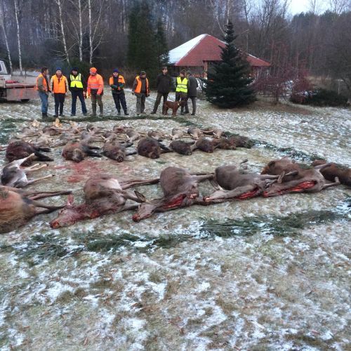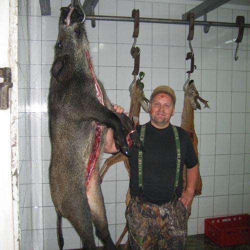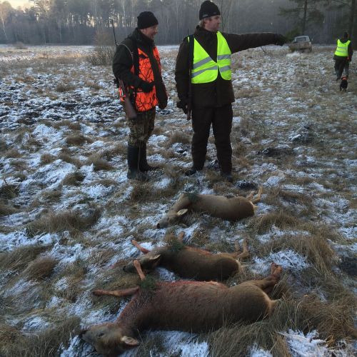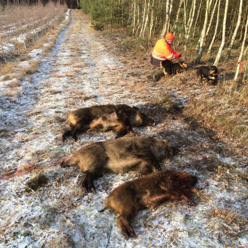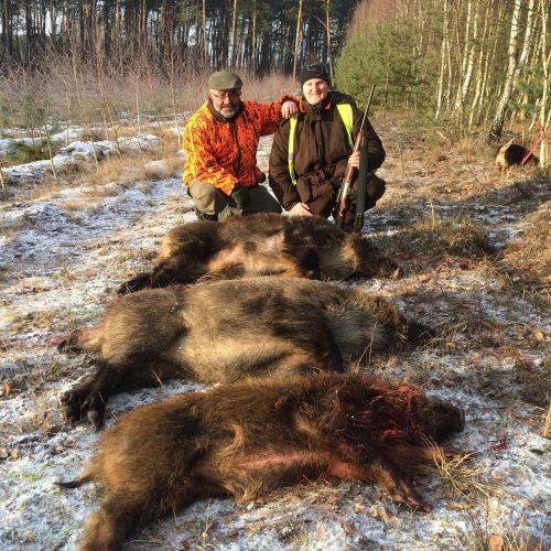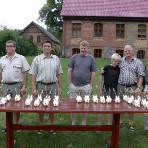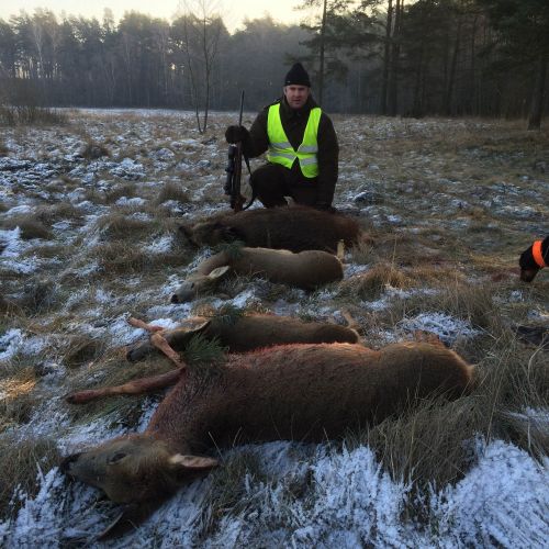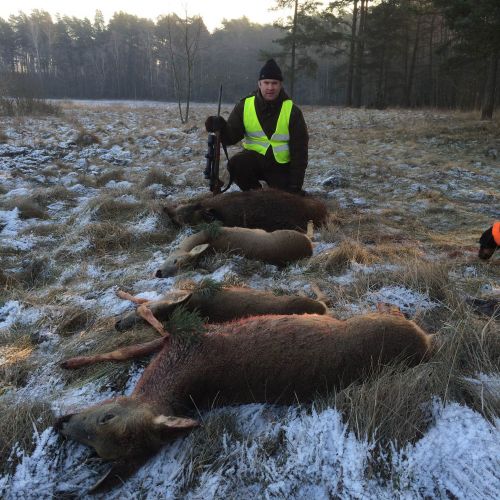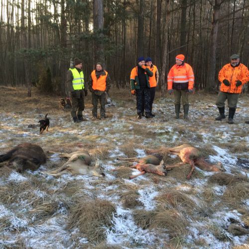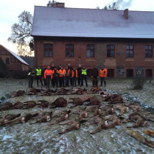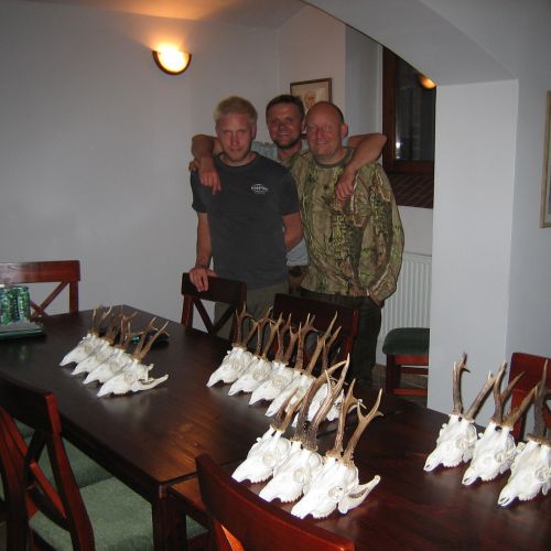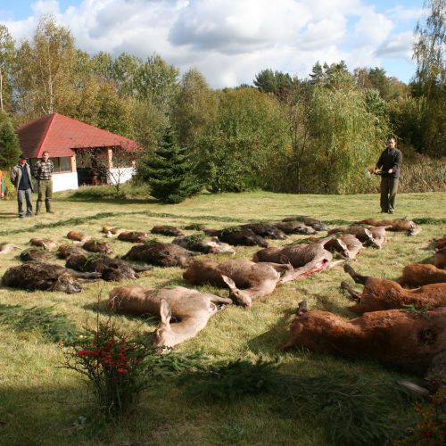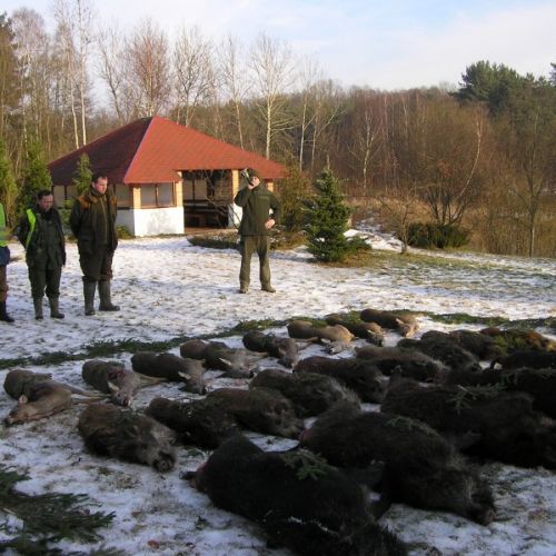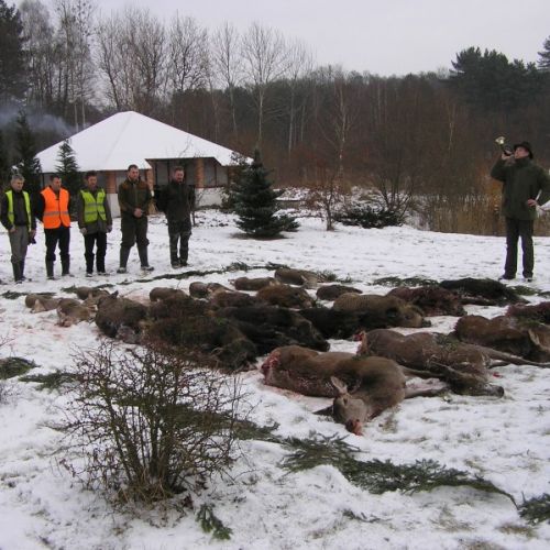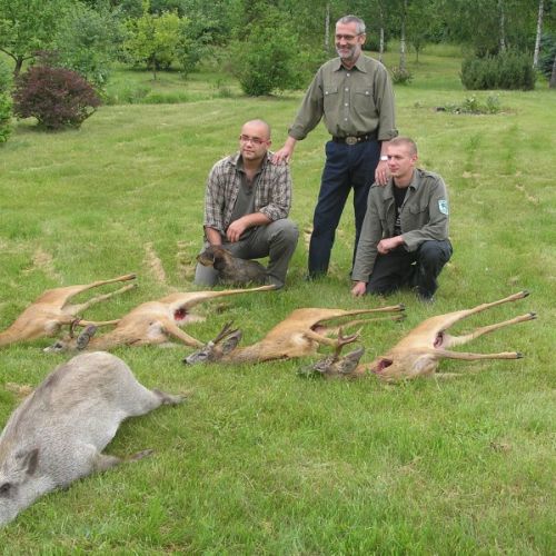 The district is home to roe deer, red deer, wild boar and a small population of fallow deer. Around 90 roebucks are taken here every year. The majority of these have a trophy size of under 280g net, but bucks with a trophy of over 300g are also produced. The annual red stag quota is 25 - the vast majority of trophies having a weight of between 4 - 5 kg. However stags of over 6kg are taken every year. At present no fallow deer have been released for hunting. Wierzchlas has a dense population of wild boar, and these can be shot on individual hunts throughout he season, and on driven/small driven hunts in the autumn and winter months. Small driven hunts are usually carried out with groups of 5 -8 hunters, in combination with individual hunting.