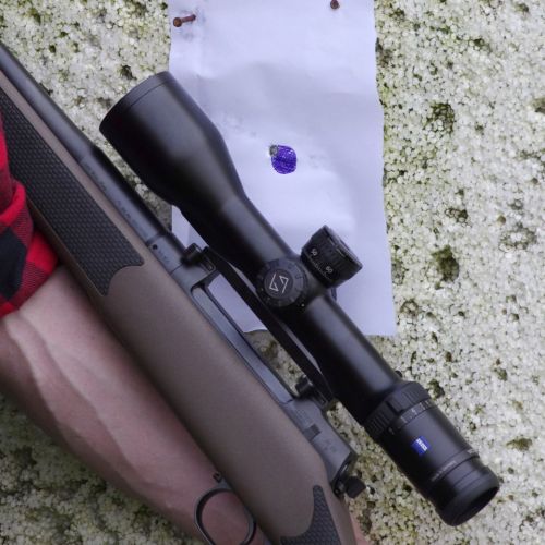 We walked to the targets expecting anything. However, as we got closer a logical explanation became obvious. The bullet had punched a nice little hole in the small blue bull’s-eye exactly in the position of the crosshairs as the shot went off. Not a bad start at all! I went back and fired another shot. It also had the courtesy to land where I was aiming and thus I finished the fastest zeroing process I had ever experienced. Sometimes you simply get lucky – today it was my turn!