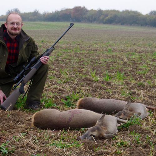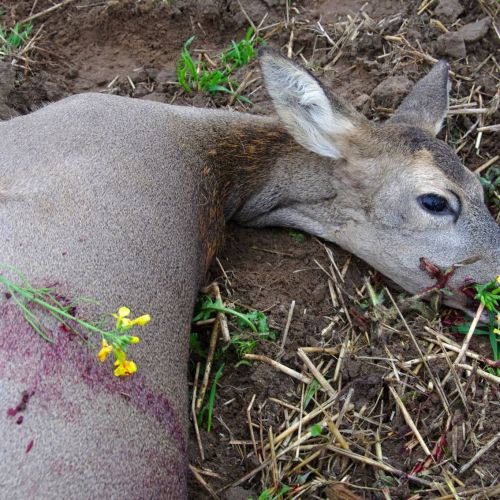 I followed the jumping roe through the scope. Just a few seconds before it reached the salvation of the hedge it made the fatal mistake that seems imbedded deeply in the genes of roe deer. It stopped to orientate. The firing pin fell instantly – and so did the deer. The distance was approximately 180 meters. I was more than satisfied. The first two shots at game with the new rifle had resulted in to fine roe does. They fell less than 20 seconds apart and yet at a distance between them of nearly half a kilometer.