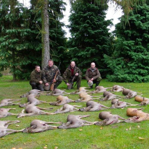 When we ended the hunt after three short days, we arranged all the deer for a photo on the lawn in front of the hunting house. As a final ceremony, our guides played the horn signals for “roe deer” and “Darz Bór” over the dead animals. The trophies of this remarkable three-day adventure were plentiful. First and foremost there is the happy memories of the hunt and the nice trip in the company of a good friend. However, the nice photos and not least the fantastic roe deer venison that hibernates in my deep freezer are also great trophies indeed.