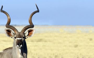 I followed the direction he was looking and there – only about 100 meters down – a giant kudu bull grew out of the shadows beneath a tree that it was feeding on. I quickly got my own set of binoculars in action and a crystal clear image of the magnificent animal appeared before my eyes. My heart skipped a beat or two. This was indeed a sight for sore eyes! The long horns of this bull was curling in deep black turns towards the sky in perfect V-formation. The amber colored tips seemed to be extremely far away from the bases of the horns that were as thick as a grown man’s arms.
