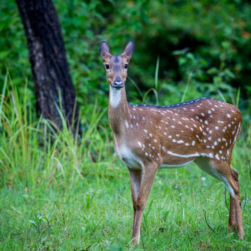 Description: Medium sized deer weighing up to 17 kg. It measures up to 65 cm over the shoulder and reaches a total body length of 1,10 m without tail (5 cm). General colour greyish brown. The male has protruding upper canines reaching a max. length of 12 cm. The adult male has a 5 cm long, hairy sexual gland that may contain up to 30 gram of the precious musk, for which the animal is still ruthlessly hunted.