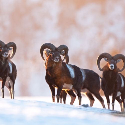 Description: Middle sized animal of the sheep family weighing up to 60 kg. (rams), and measuring around 80 cm over the shoulder. General colour dark brown on the back and along the flanks. A black band is bordering the undersides that are pure white. Older rams have got a "saddle" of white starting on the middle of the back and spreading down the sides. The horns are very different from region to region. Mature male horns are curled almost on full revolution.. In some areas however, the horns curve outwards and start twisting anew. There are also groups of individuals where the horns curve inwards, sometimes so much as to grow into the neck of the animal and thereby killing it. Only the rams have horns.