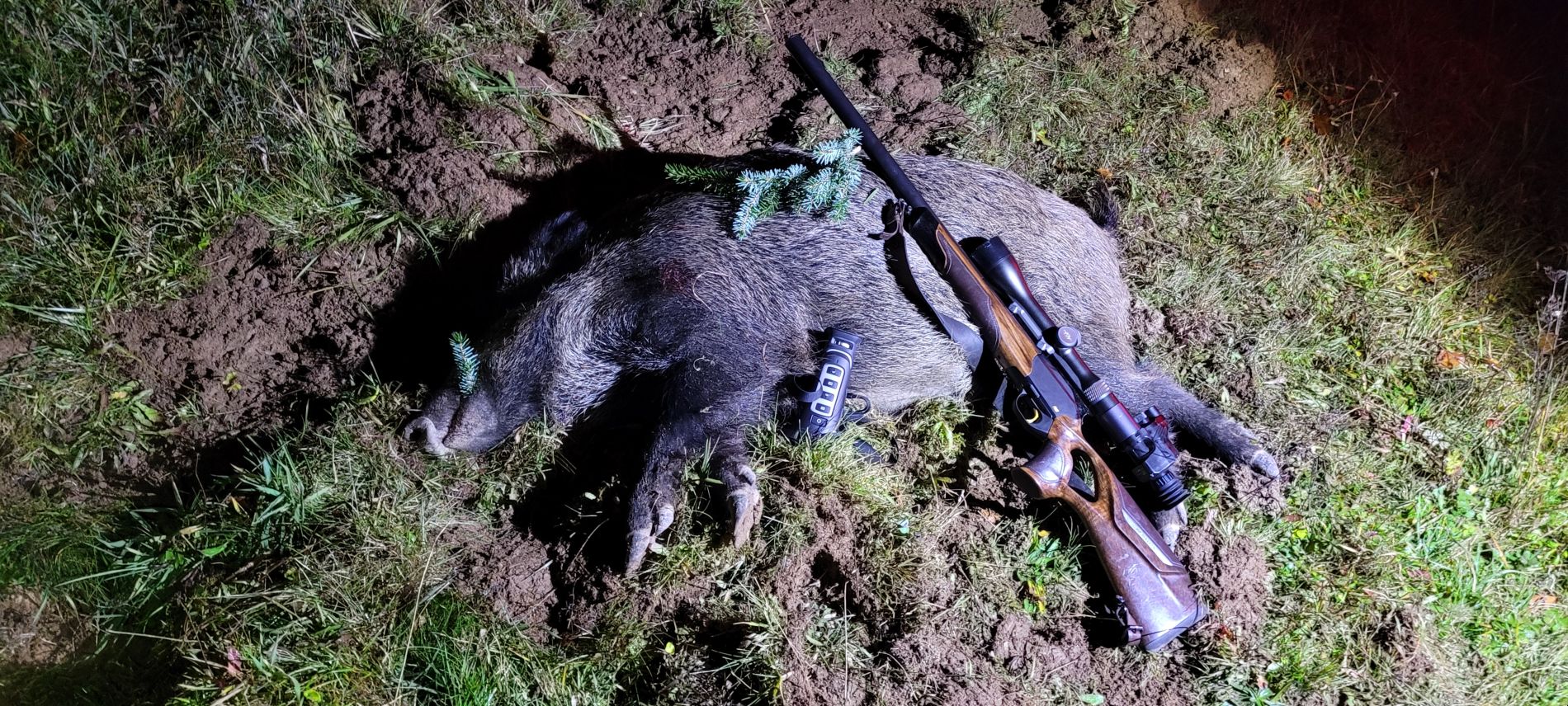 Punctually, Andrey picked me up. I was able to shoot a yearling at about 60 m. Andrey handled all formalities correctly, including African swine fever and trichina tests.