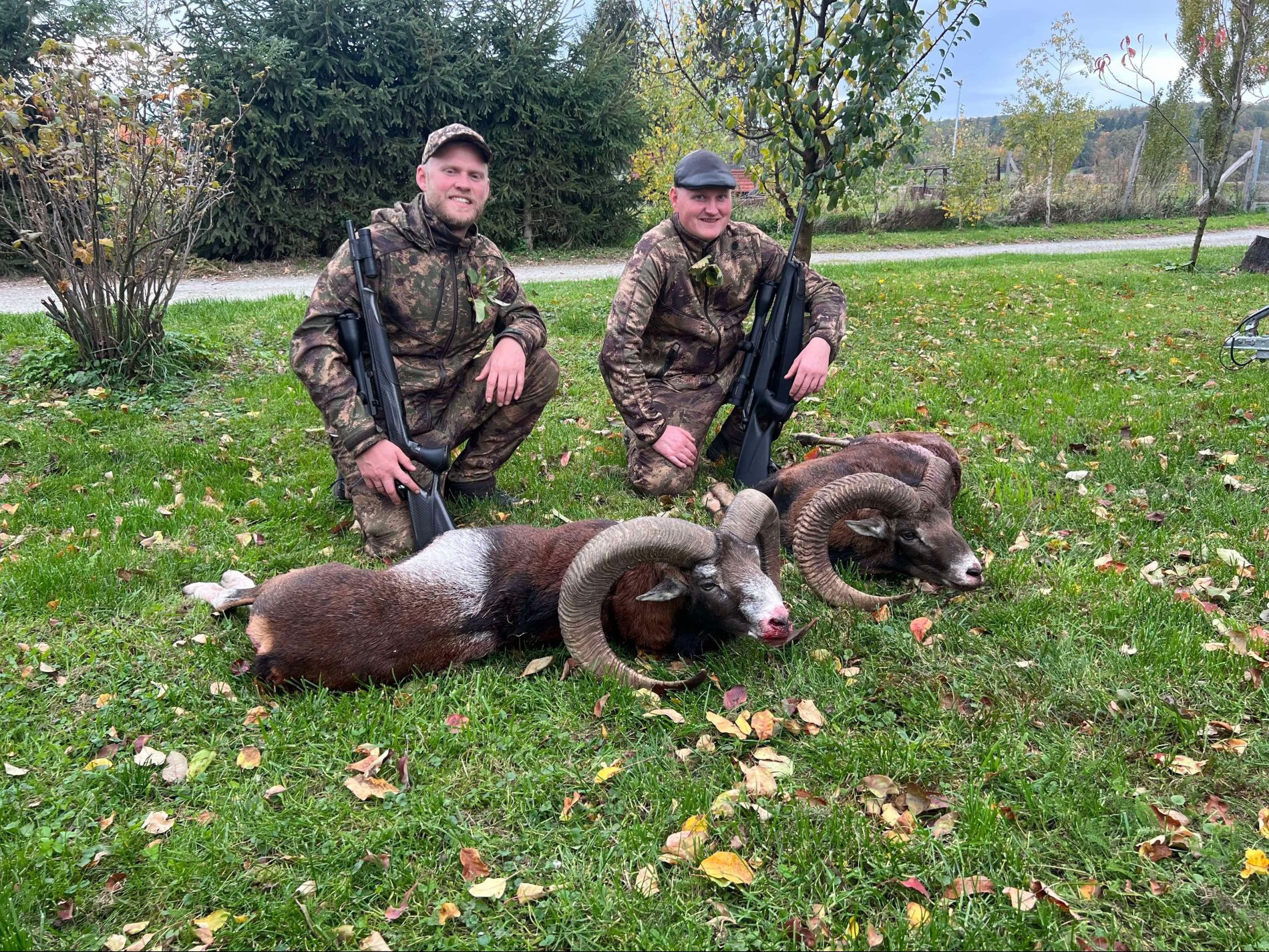 There were pigs and red deer everywhere we went. We saw over 80 pigs. We saw red deer and fallow deer, and over 100 mouflons. In total, we took down 2 beautiful mouflon rams, 5 pieces of red deer, 8 pigs, 1 doe, 1 roebuck, 4 raccoons, and 2 badgers during the 3 days of hunting.
