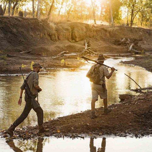 Arnhemland, where the hunt takes place, covers 100,000 km2, which is more than twice the size of Denmark. It is possible to choose between 2 modes of transport to get to the hunting district. The most comfortable is clearly chartering an aircraft to fly from Darwin to Bulman, an aboriginal town in the heart of Arnhemland. The flight takes 1.5 hours, and is followed by a car journey of around 1-2...